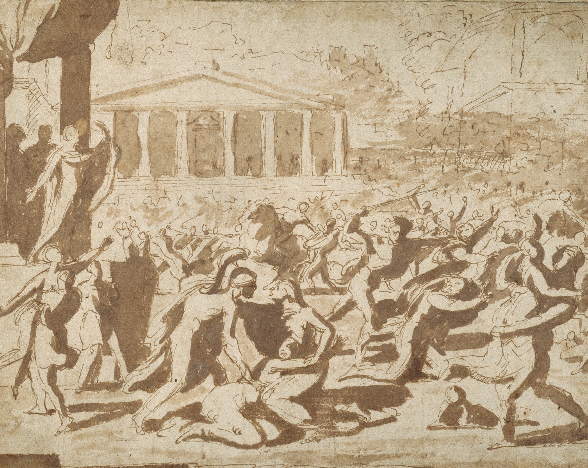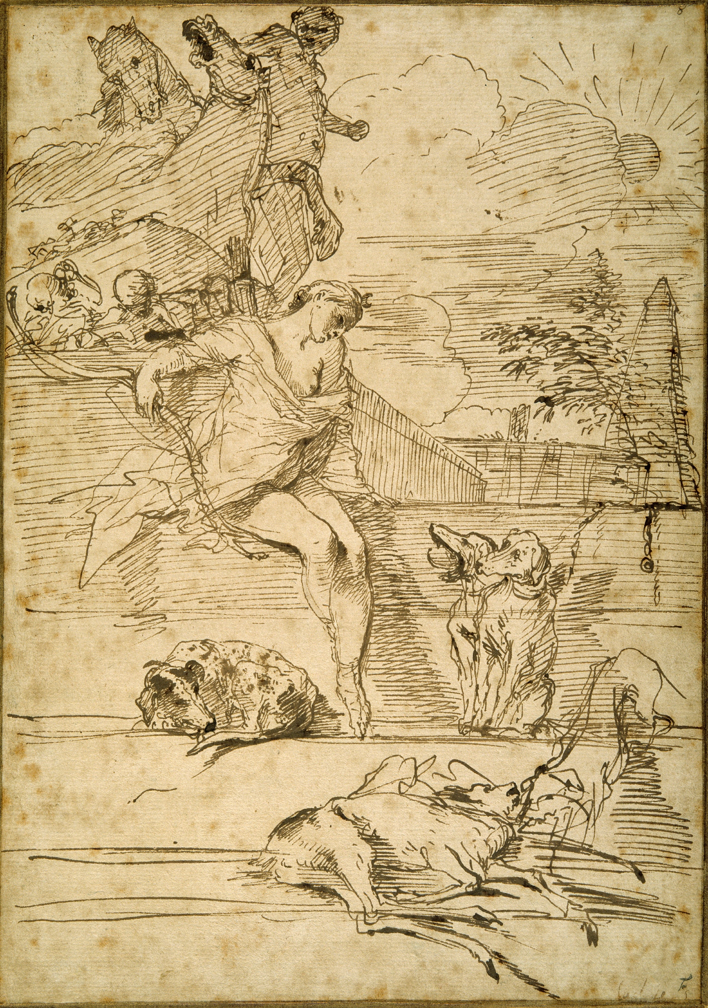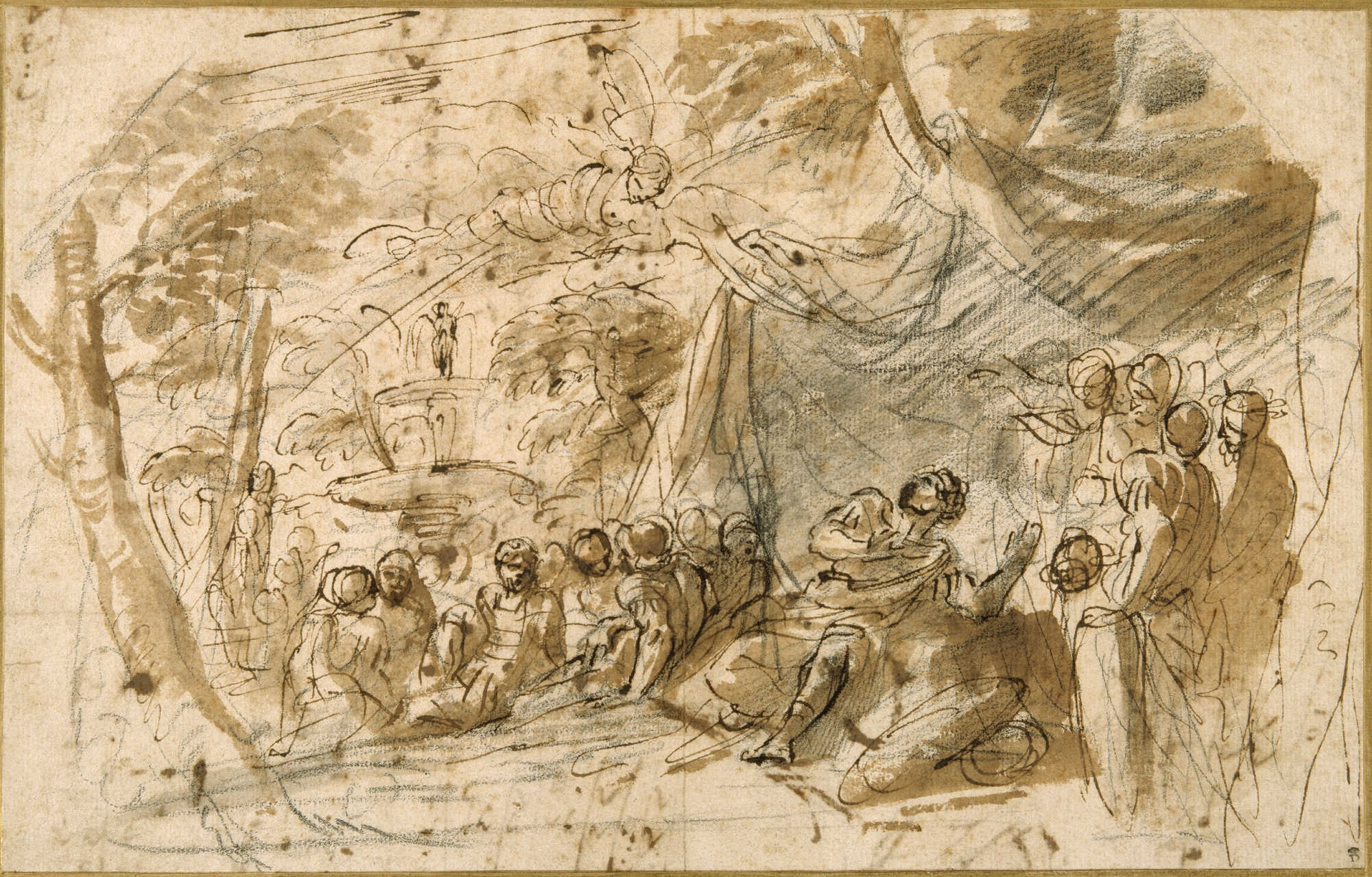 Iris sent by Juno to Turnus, pen and brown ink with brown wash, over black chalk on paper
