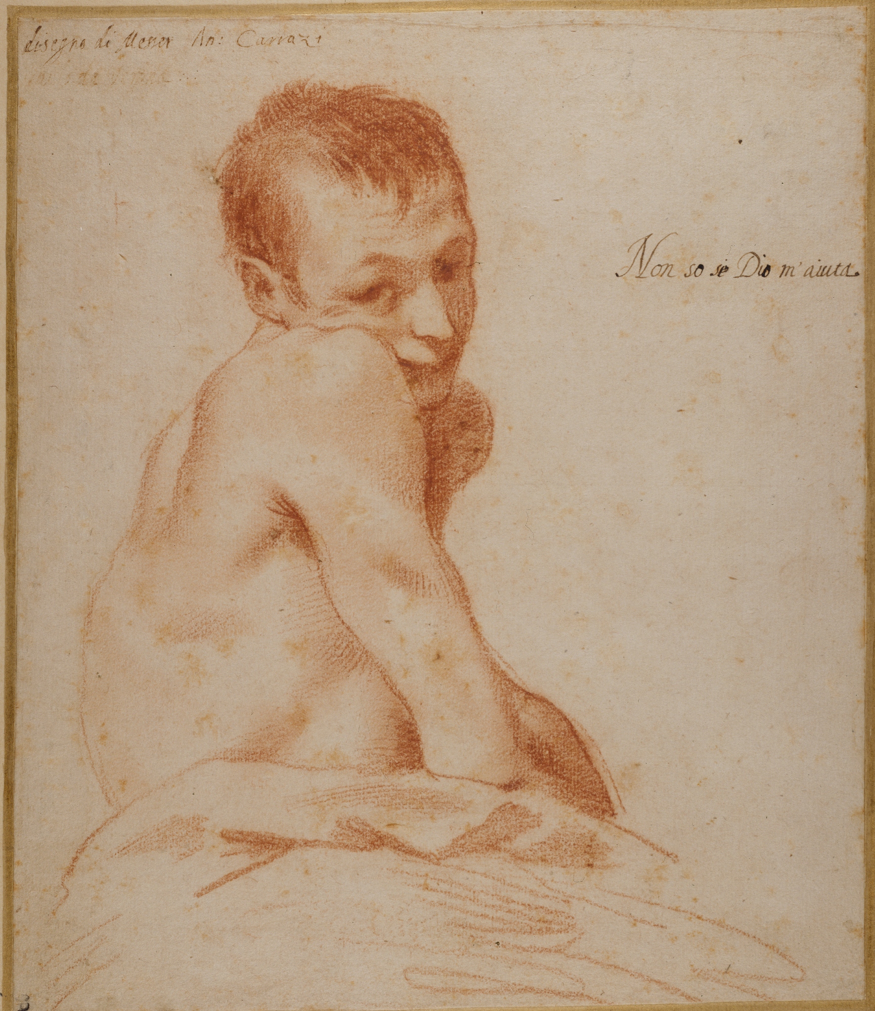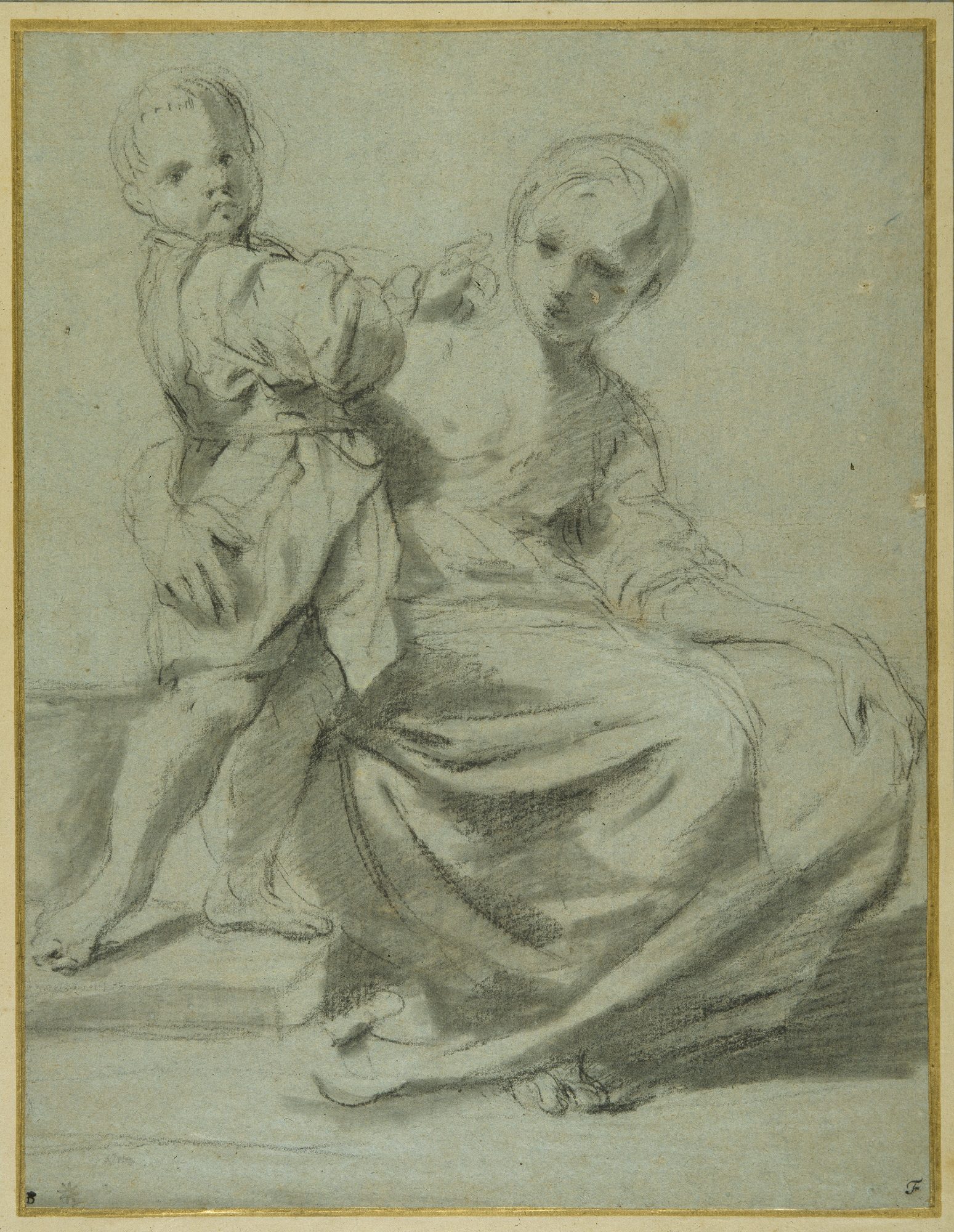 Mother and child, black chalk, with brown wash, slightly heightened with white, on faded blue paper