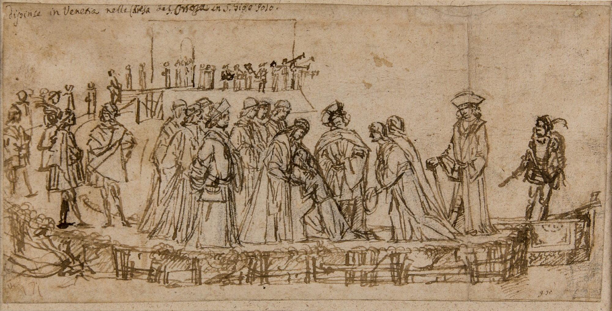The English Prince Conan taking leave of his father, pen and brown ink over preliminaries in black chalk on paper