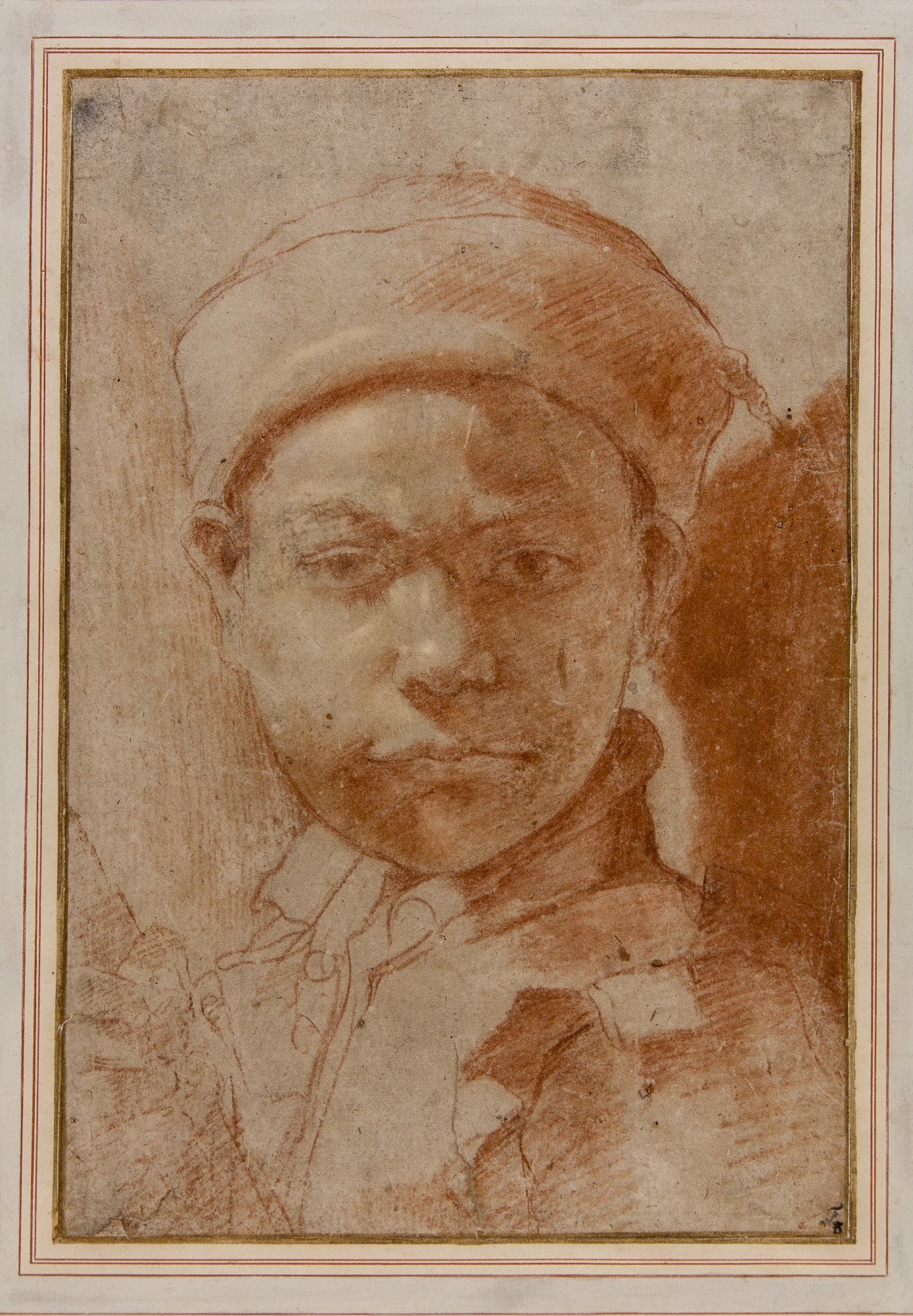 Portrait of a youth, red chalk on grey paper, heightened with white body colour