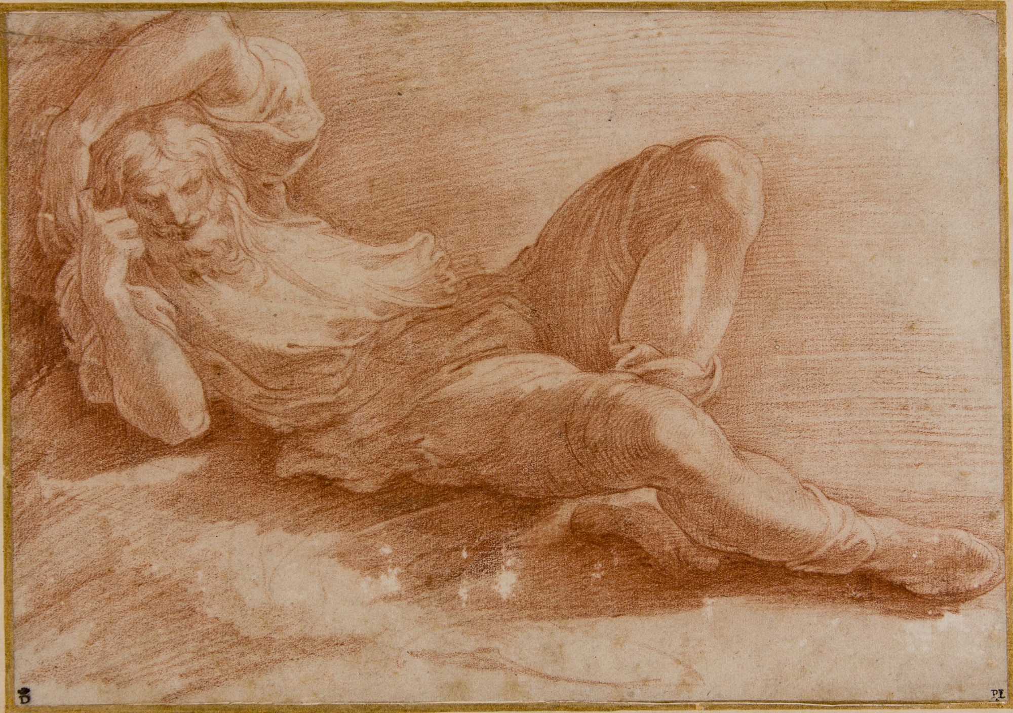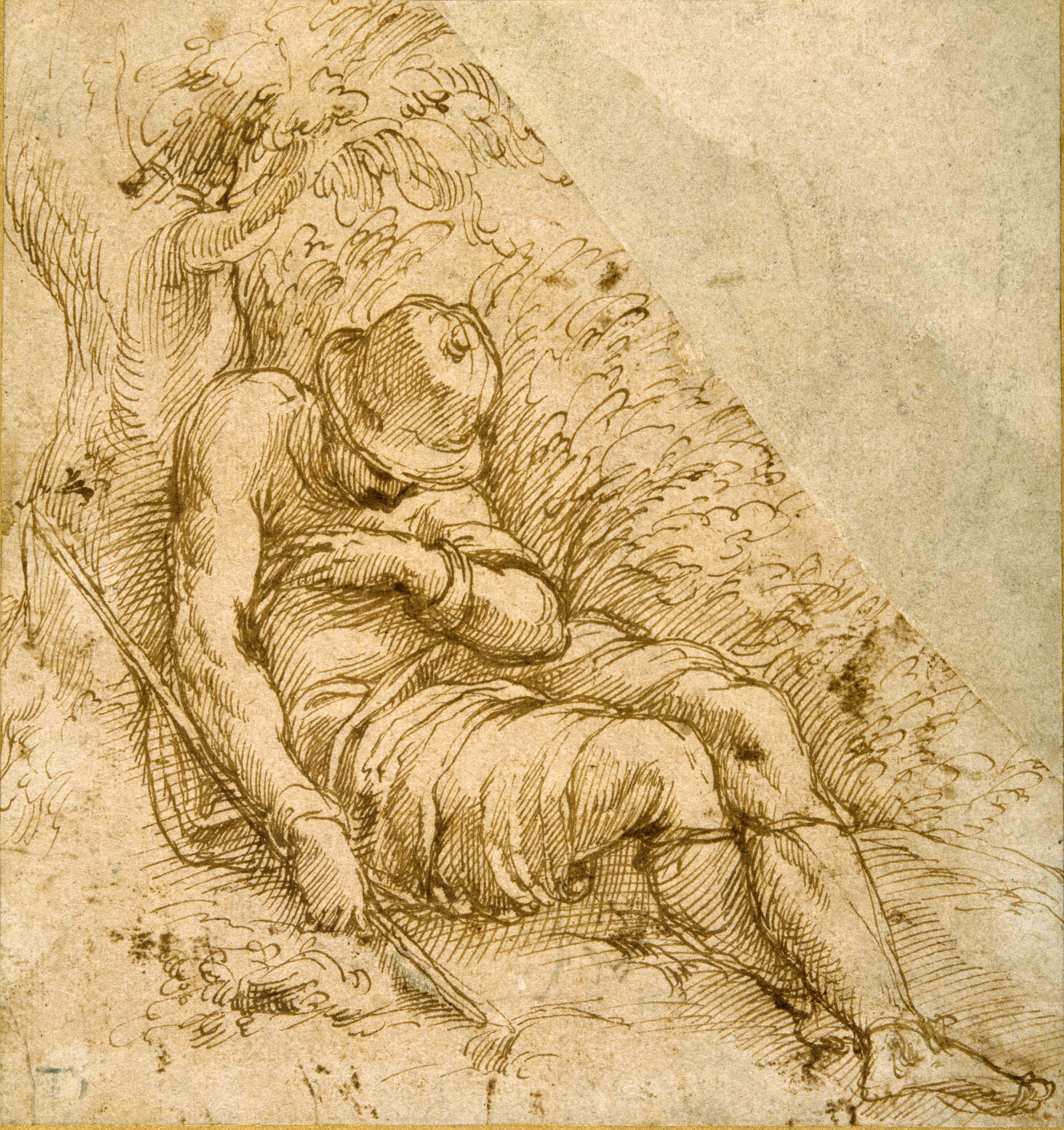 A shepherd sleeping under a tree, pen and brown ink on paper