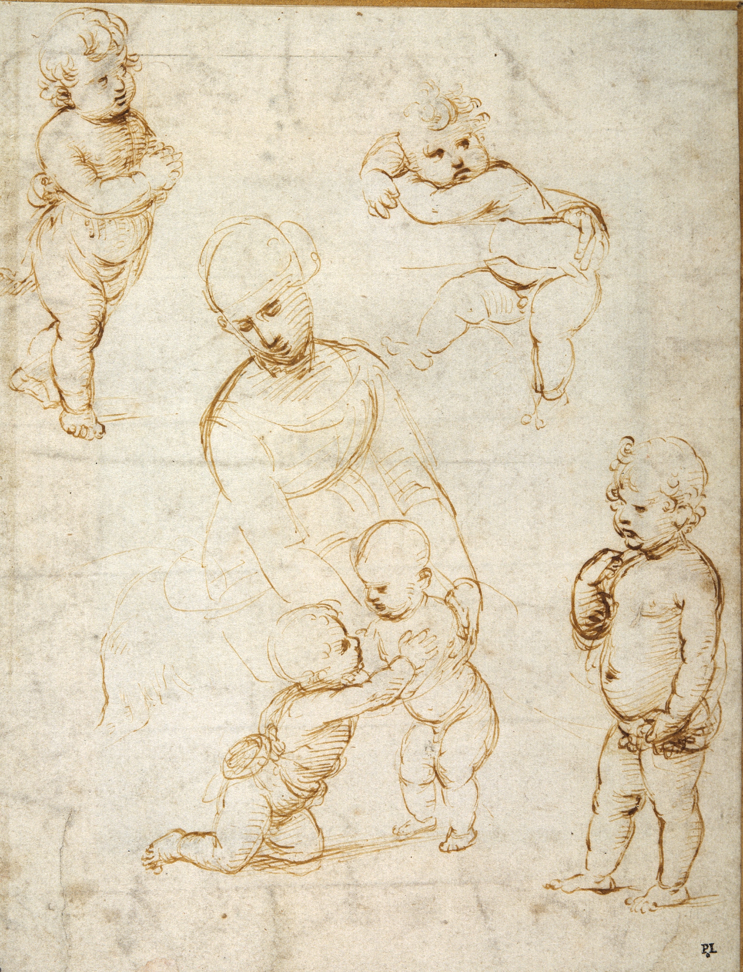 Studies for 'Madonna of the Meadow', pen and brown ink on paper