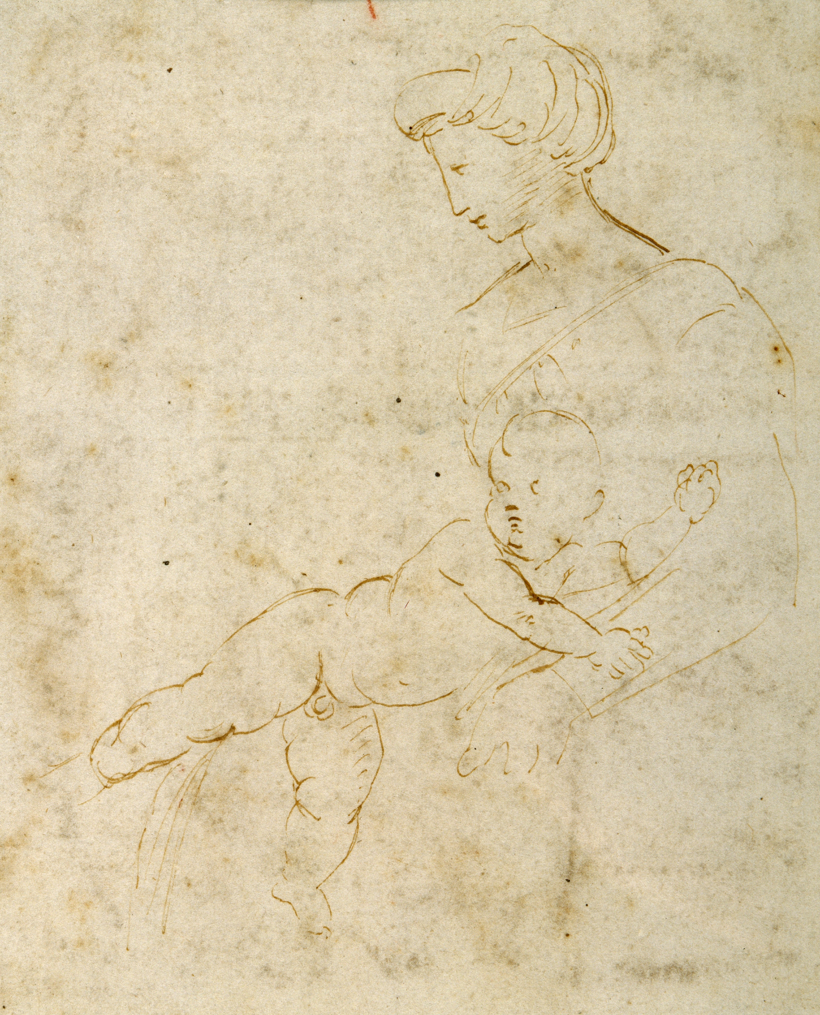 Madonna and Child, after Michelangelo, pen and brown ink on paper