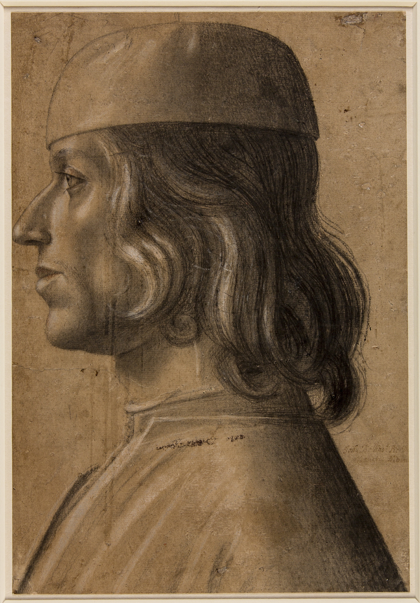 Portrait of a man in profile to the left, wearing a cap, black chalk, with a little red chalk on the lips washed over, and heightened with white body colour, on buff toned paper