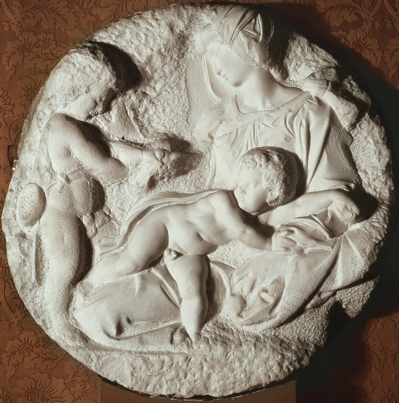 Image right: Michelangelo Buonarroti, Tondo Taddei, marble. Credit Royal Academy of Arts, London, UK/Bridgeman Images