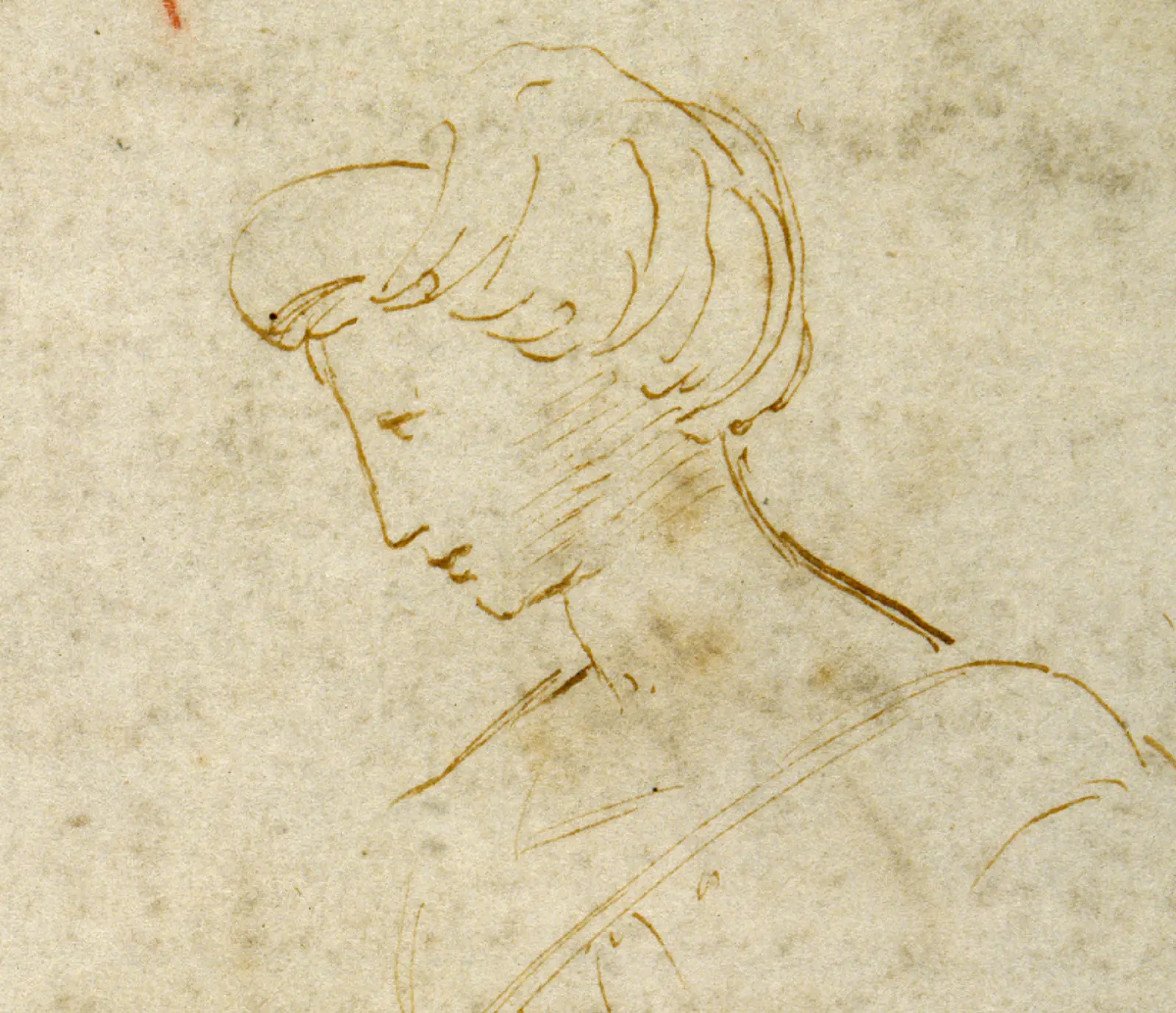 Around this time, the young Raphael was also working in Florence. There is a pen and brown ink study inspired by Michelangelo’s David by Raphael in the British Museum’s collection. His study of Michelangelo’s sculpted masterpiece dates to the same time as the drawing we have been looking at in detail here.