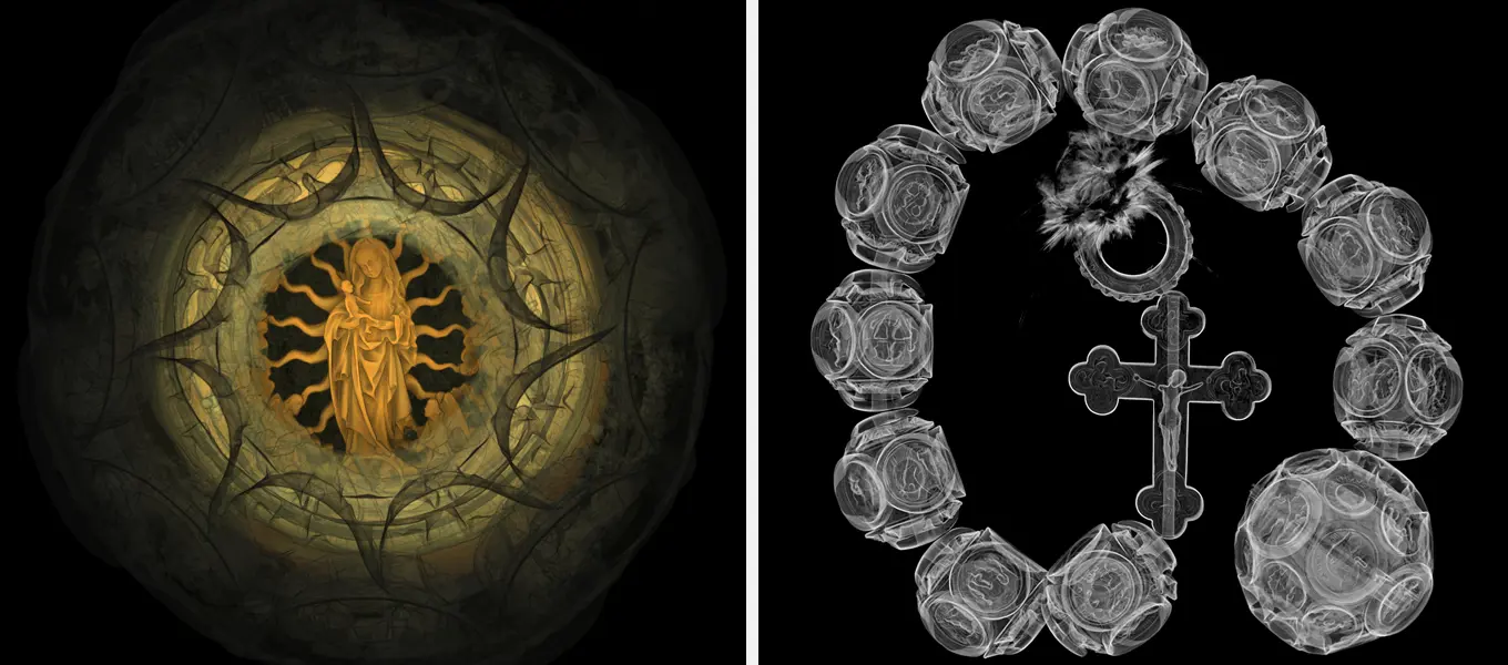 The Natural History Museum in London has a computer generated imagery (CGI) scanner, which is unusually used to x-ray items rather than bodies. They have scanned the rosary with each scan taking 50 minutes. Two 360° CGI images will be created where minute detail of each bead can be studied together with the composition of the pieces and the voids within created during assembly of the carved pieces of boxwood.