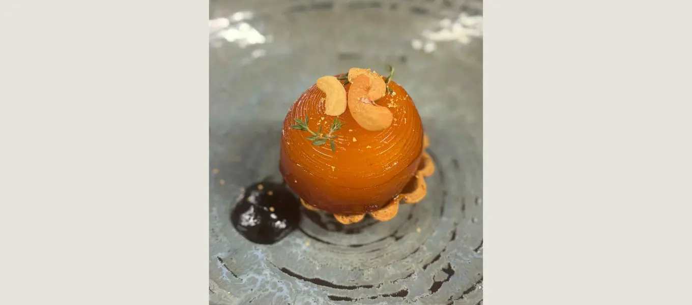 4) Use a Japanese turner for long sheets of beetroot, rolling the strips into rolls no wider than the bottom of the tart cases. Place these in the caramel lined moulds and cover with the remaining caramel. Cook for 45 minutes until tender and golden.