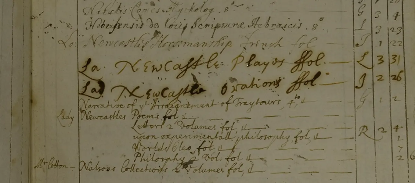 Notably, the catalogue composed in c.1657 by James Wheldon and possibly overseen by Hobbes lists 9 volumes written by “Lady Newcastle”.