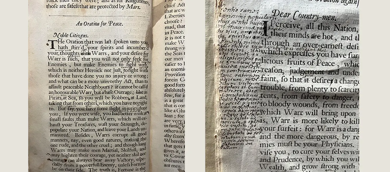 The final book currently in the library is a 1662 edition of Cavendish’s ‘Orations’. When I saw this book in the library I was surprised and excited to see that it was covered in annotations.