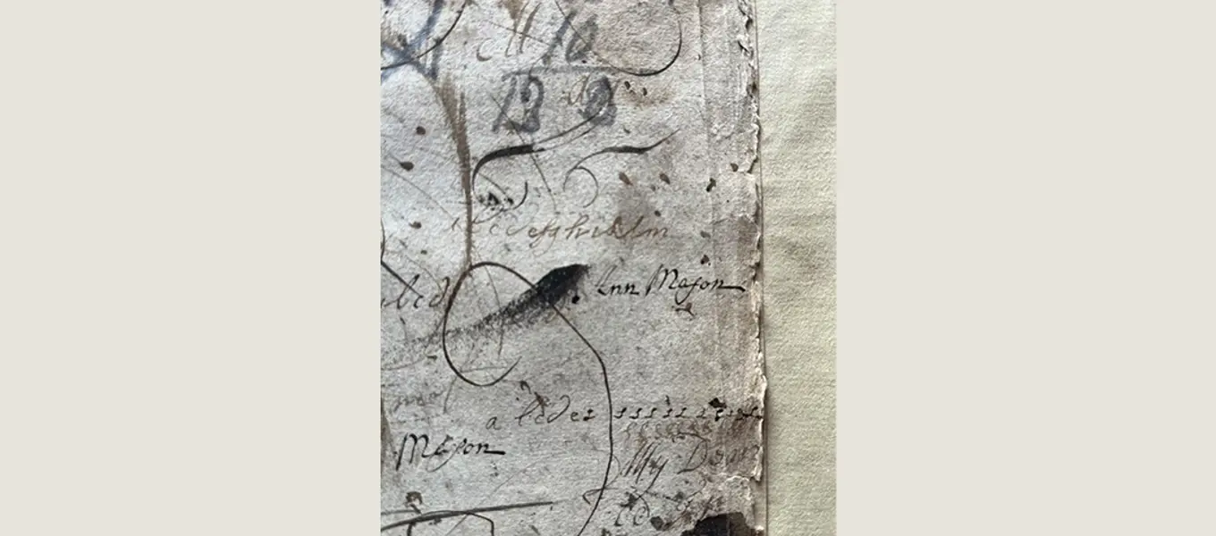 The final name inscribed into the book also appears on its final messy page: “Ann Mason”. So far, I have been unable to connect any Masons to the Meymott family, so Ann Mason remains a mystery.