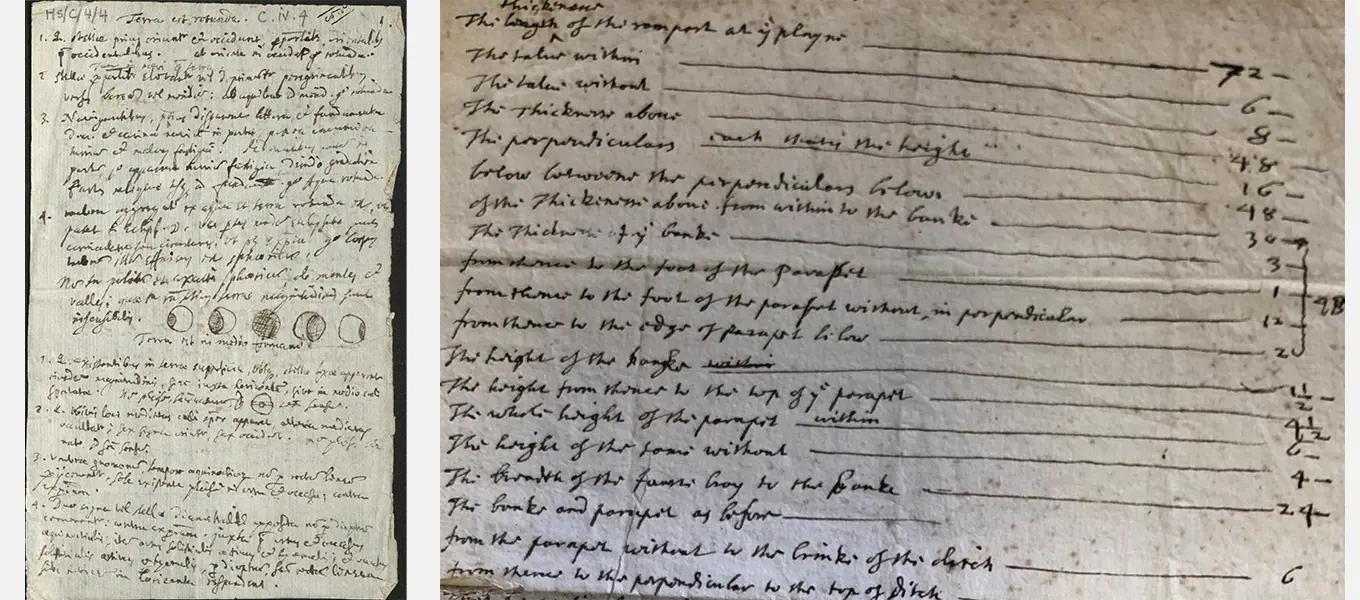 L-R Payne's notes on Copernicus (HS/C/4/4) and Hobbes's notes on fortification (HS/C/7/10)