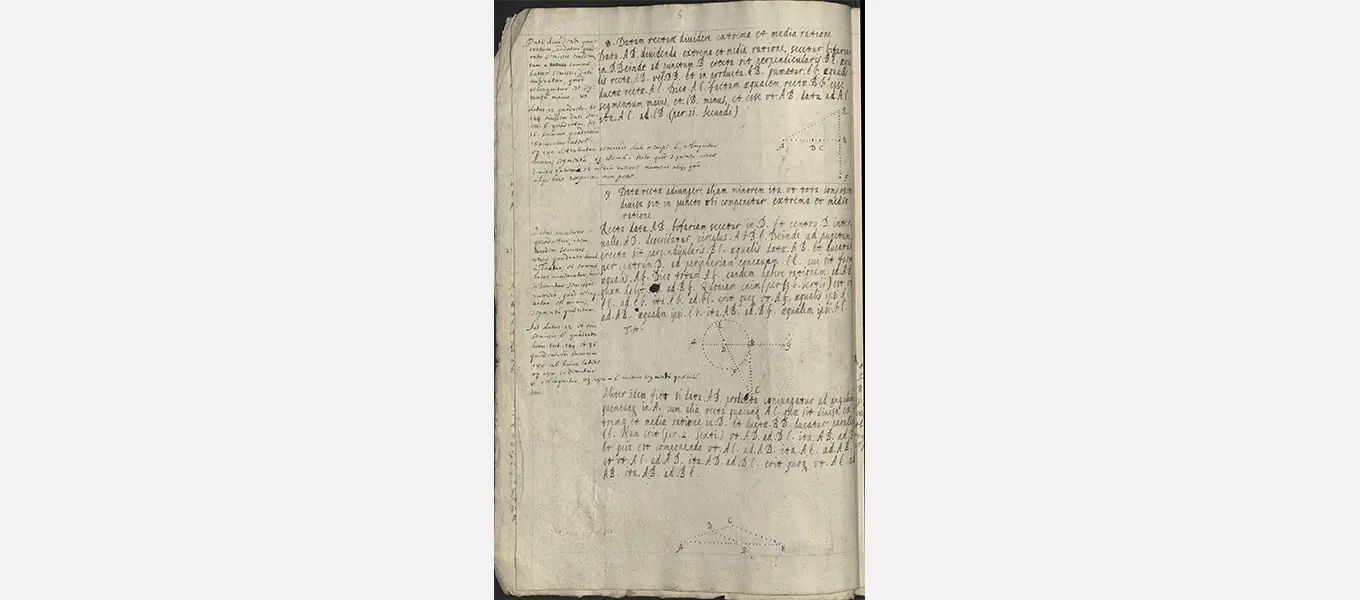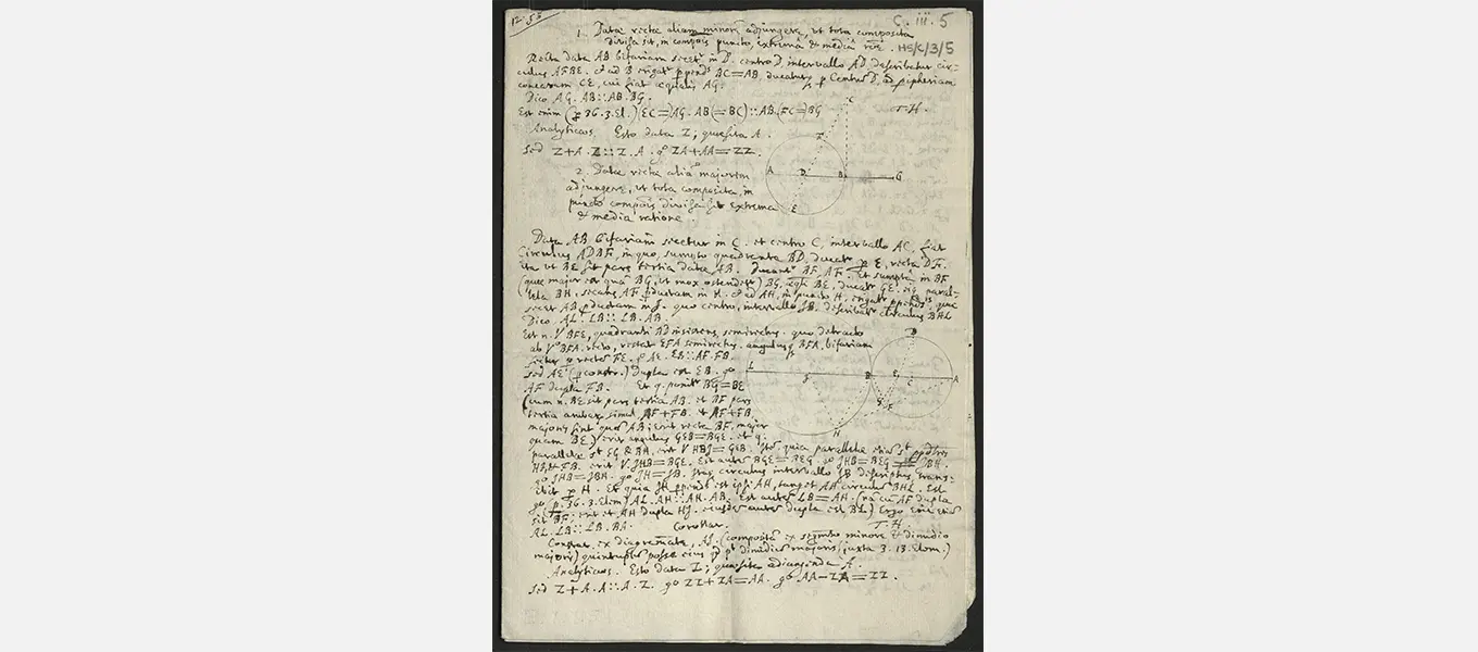 An example of this is the small collection of mathematical notes in the collection, which were once assumed to be in Hobbes’s autograph (like other items in the collection). However, it is now widely accepted that these papers are in fact the work of Robert Payne, mathematician and chaplain to the Earl of Newcastle, William Cavendish and his brother the scientist Charles Cavendish (the 3rd Earl of Devonshire’s cousins) in the 1630s. Payne served as a key figure in the intellectual and scientific circle around the Cavendish brothers which included other practitioners, such as William Oughtred, Walter Warner, John Pell, and of course Thomas Hobbes.