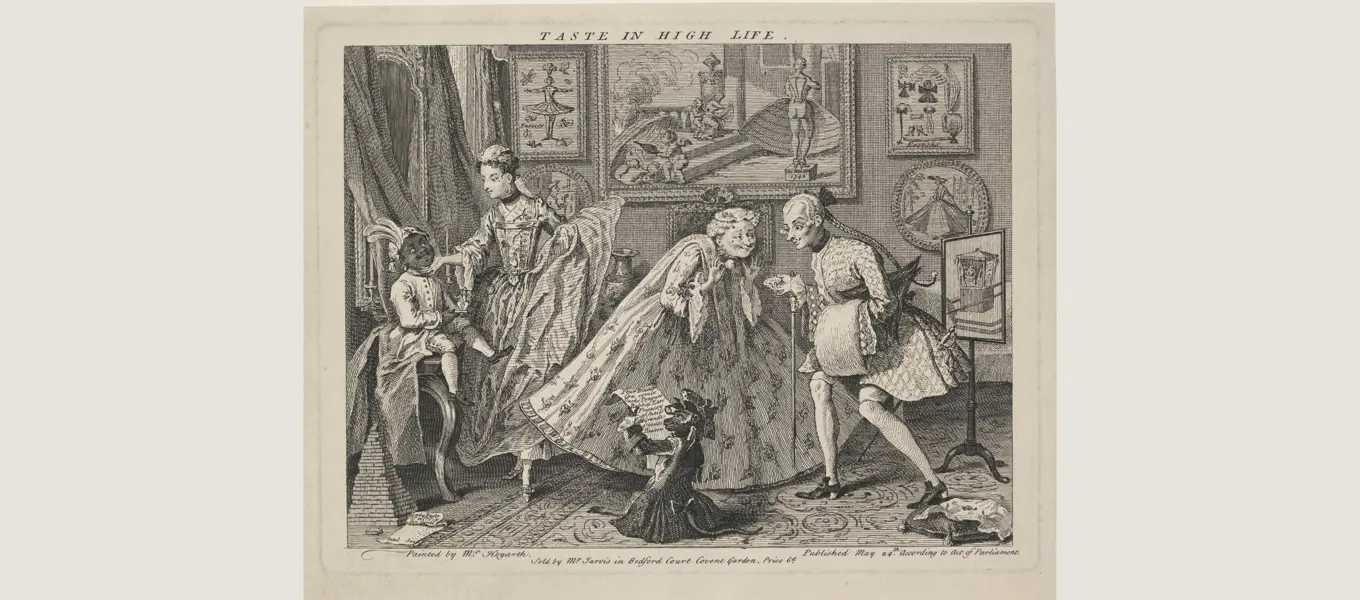 J Jarvis after William Hogarth, Taste in High Life, 1746, etching, British Museum 1826, 0313.23