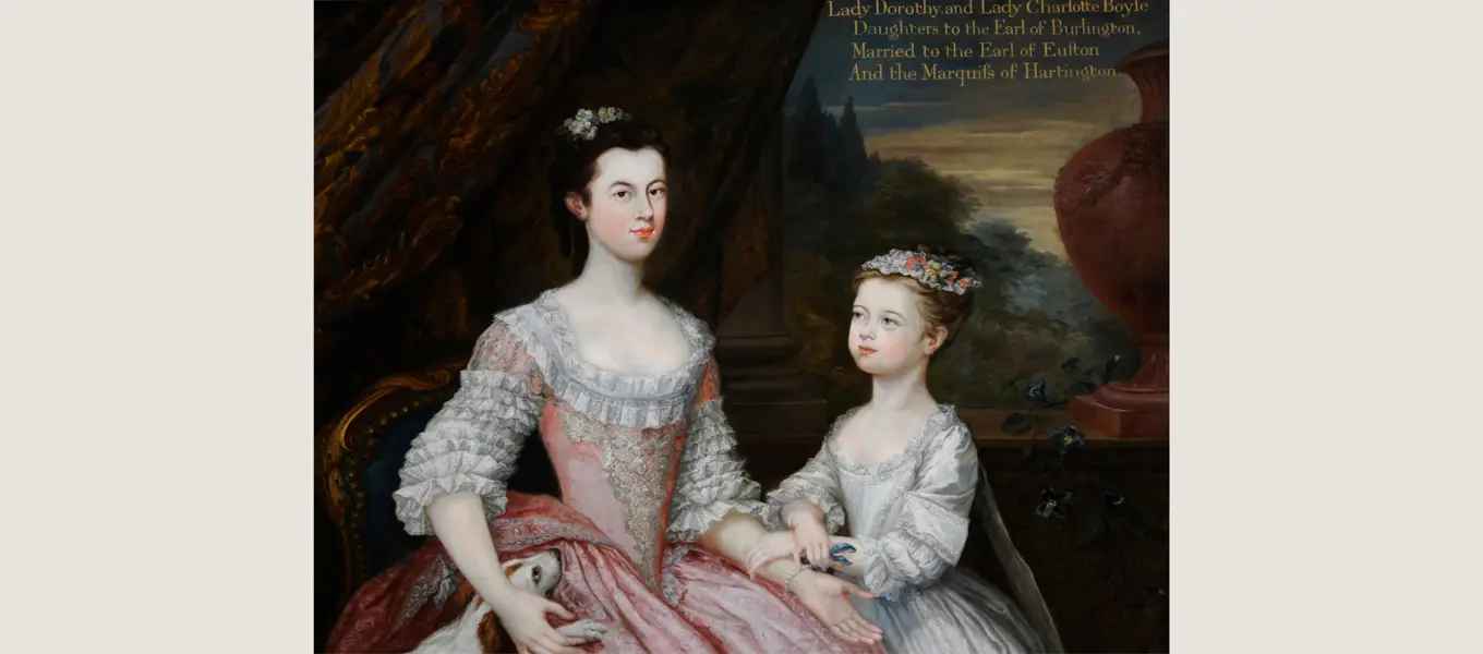 Lady Dorothy Boyle (1724–1742), Countess of Euston, and Her Sister Lady Charlotte Boyle (1731–1754), Later Marchioness of Hartington, Dorothy Boyle (née Savile) 1699-1758, oil on canvas, Hardwick Hall, Derbyshire ©National Trust Images