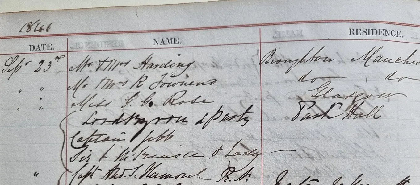 The name Lord Byron is familiar to most people with an interest in history. George Gordon, 6th Baron Byron, is one of Britain’s most famous poets. He died in 1824 having no legitimate sons, but he had a cousin who inherited the title of Lord Byron. This man signed the visitors’ book at Chatsworth on 23 September 1841.